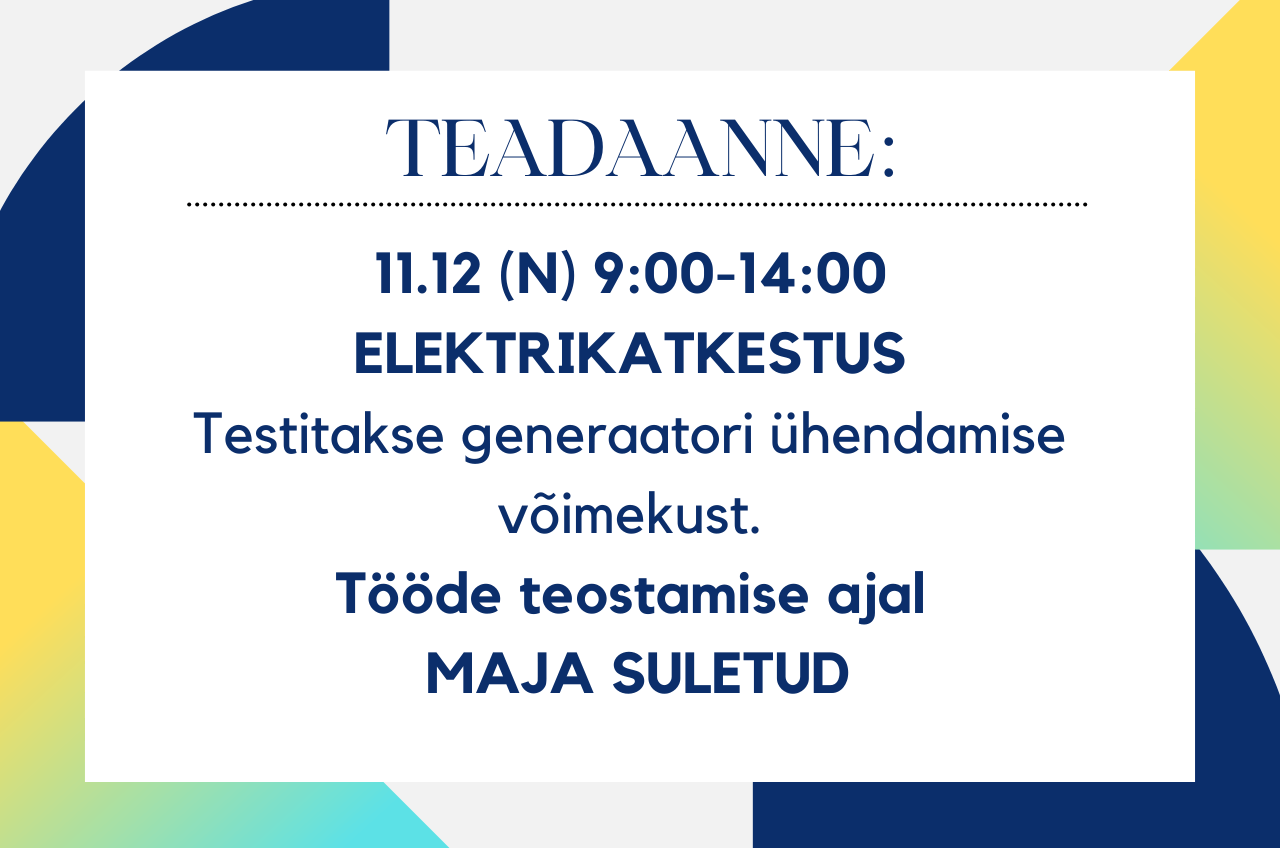 Neljapäeval, 11. detsembril kell 9:00–14:00 toimub spordihoones elektrikatkestus,