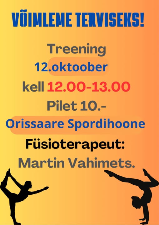 Sel pühapäeval toimub Orissaare Spordihoones füsioterapeut Martin Vahimetsa treening VÕIMLE TERVISEKS.
